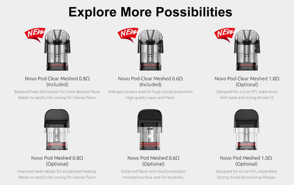 تتميز خراطيش SMOK NOVO البديلة بقطعة فم مصممة هندسيًا مع سعة عصير قابلة لإعادة التعبئة تبلغ 2 مل، ومصممة بذكاء مع تعبئة جانبية بسيطة لاستيعاب مجموعة واسعة من العصير الإلكتروني بنكهة ملح النيكوتين.