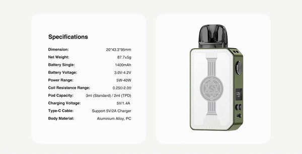 لا يتميز جهاز Lost Vape Centaurus E40 Max بوظائفه المتطورة فحسب، بل أيضًا بتصميمه الجمالي. يُضفي غلافه المعدني، المُزخرف بنقوش مُعقدة، لمسةً من الفخامة والأناقة. مع زر تفعيل سهل الاستخدام، يُعد هذا الجهاز خيارًا متعدد الاستخدامات وأنيقًا لأي مُستخدم. باختصار، يجمع Centaurus E40 Max بين الراحة والأداء والأناقة، مُوفرًا تجربة تبخير فائقة ومُخصصة.