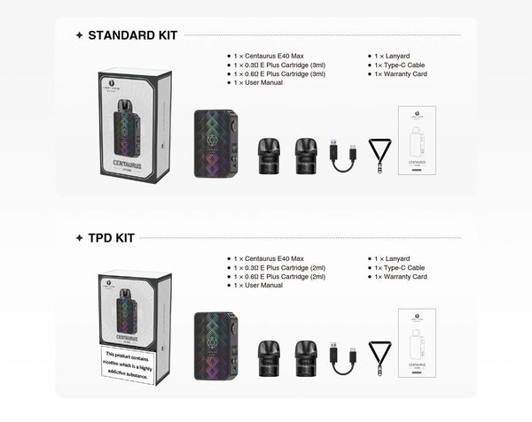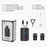 شاشة LCD الكبيرة في جهاز Centaurus E40 Max تُسهّل قراءة مستوى الطاقة ومستويات البطارية وغيرها من المؤشرات المهمة، مما يُحسّن تجربة المستخدم بشكل كبير. بالإضافة إلى ذلك، يتميز الجهاز بخاصية الشحن السريع عبر منفذ Type-C، مما يضمن سرعة فائقة في وقت التوقف. تصميمه، المصنوع من مواد عالية الجودة مثل المعدن وPCTG، ليس أنيقًا ومتطورًا فحسب، بل متينًا وقويًا أيضًا، مما يجعله مثاليًا للاستخدام طويل الأمد.