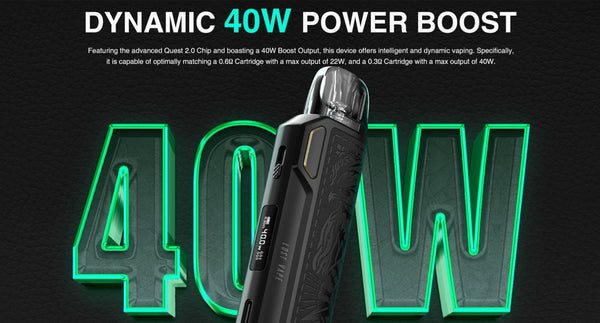 يتميز هذا الجهاز بشريحة Quest 2.0 المتطورة وقوة دفع 40 واط، مما يوفر تجربة تبخير ذكية وديناميكية.