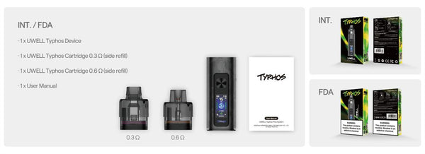 يقدم نظام Uwell Typhos Pod Kit أداءً عاليًا بتصميم أنيق وصغير الحجم. يعمل ببطارية 2000 مللي أمبير/ساعة ويدعم خرجًا يصل إلى 45 واط، وهو مُحسّن للاستخدام في كل من وضعي RDL وMTL. يتميز بكبسولة تعبئة علوية واسعة سعة 6 مل، ووضعي إخراج (Wave/Storm)، وشاشة عالية الدقة نابضة بالحياة مقاس 1.05 بوصة للتحكم الفوري. بفضل تقنية CoreShield المقاومة للتسرب، وضبط تدفق الهواء بدقة، وعمر الملف الطويل، يُعد هذا الطقم مثاليًا لمُستخدمي التبخير الباحثين عن تجربة متعددة الاستخدامات ومقاومة للتسرب.