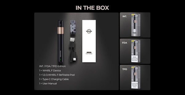 يأتي جهاز Uwell Whirl F Pod System مزودًا ببطارية قابلة للشحن قوية بسعة 450 مللي أمبير، وسعة 2 مل من سائل التبخير، وتصميم تعبئة جانبية، ومؤشر ضوئي ثلاثي الألوان لحالة البطارية. يتميز Whirl F بتصميمه الأنيق وسهولة حمله، حيث يمكن وضعه بسهولة في راحة يدك أو جيبك. كما يأتي مزودًا بحلقة دوارة لمزيد من المتعة، حيث يمكنك تدويرها وأخذ بضع نفخات للتخلص من القلق والتوتر. يجمع هذا الجهاز الأنيق ذو الشكل السداسي بين المتانة والأناقة. يتيح لك خرج الجهد المتغير تجربة تبخير شخصية، بينما يضمن التنشيط بالسحب تشغيلًا سلسًا. إعادة التعبئة سهلة للغاية بفضل خزان PCTG بسعة 2 مل ونظام التعبئة الجانبية، وكل ذلك مثبت بوصلة مغناطيسية للخزان.