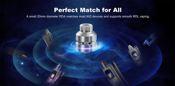 يتميز جهاز Hellvape Dead Rabbit Mini RDA بقطر 20 مم. مع حلقة التثبيت القابلة للفصل في العبوة، يبلغ قطره 22 مم، مما يجعله أنيقًا ويعمل بشكل مثالي مع أقوى أجهزة AIO. يتميز Hellvape Dead Rabbit Mini RDA بتصميم بدون دعامات، مما يتيح لك تركيب ملف واحد بسهولة.