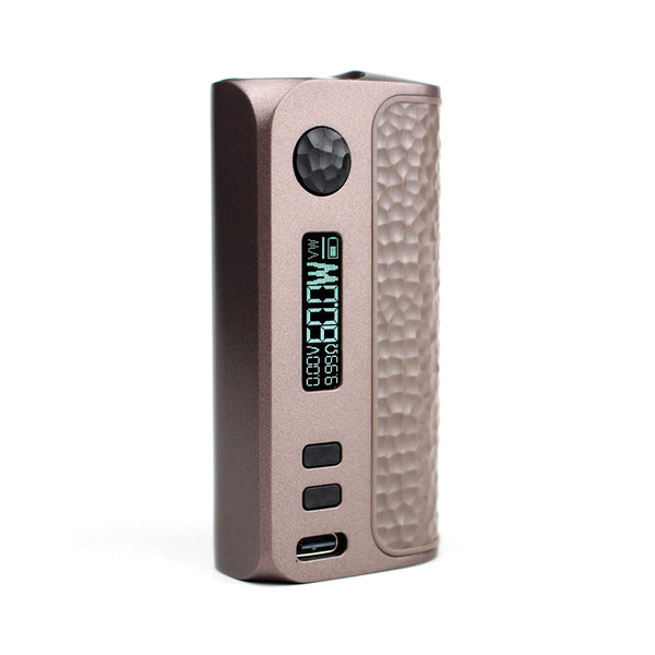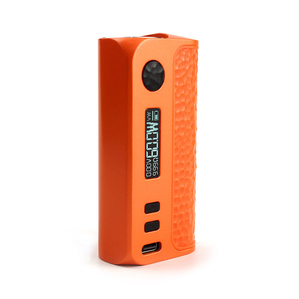 This new mod is the world's smallest box with an external 18650 battery. Of course, the battery is not included. The body of the device is made of plastic. The only, non-traditional design element is the textured surface of the battery cover and buttons, which allows for a better grip of the entire mod. On the side you will find all the functional elements that the mod offers. On the top is the power button, below it is the OLED display, two buttons for controlling the user interface and the USB-C port. The mod has a power output of up to 60W. Besides variable wattage (VW), it also offers additional output modes in the form of temperature control (TC) and variable voltage (VV). You can also adjust the brightness and timeout for the display to turn off. The mod is equipped with a USB-C charging port that allows for fast and efficient 2A charging.