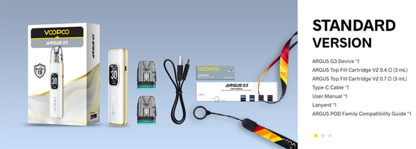 يُعد جهاز Voopoo Argus G3 Pod Kit الرائد في سلسلة Argus، حيث يجمع بين الجمالية الفاخرة وأداء التبخير المتطور. يكمن ابتكاره الأساسي في تقنية iCOSM CODE 2.0، التي توفر نقاءً للنكهة يدوم حتى 30 يومًا، وتنظيمًا ديناميكيًا للطاقة للحصول على بخار سلس، وسعة 100 مل من السائل الإلكتروني. مزود بأكبر بطارية في فئته (1500 مللي أمبير/ساعة)، يوفر ما يصل إلى 24 ساعة من الاستخدام المتواصل. يتميز تصميمه بإطار معدني/ماسي القطع مصمم بدقة، وتشطيبات متدرجة/غير لامعة، وانحناءات مريحة مستوحاة من المجوهرات الفاخرة. يجمع Argus G3 بين تقنية التبخير المتقدمة والحرفية الفنية، ليضع معايير جديدة لأجهزة التبخير المحمولة، ويجذب المستخدمين المميزين وعشاق التصميم على حد سواء.