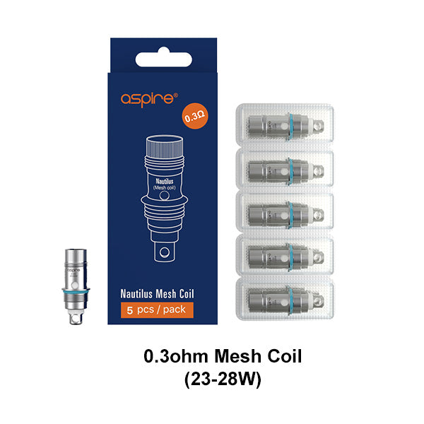 These are the new Aspire Nautilus BVC Cotton Coils to use with the Aspire Nautilus, the Aspire Nautilus Mini, the Nautilus 2S and the Nautilus AIO. With the recent release of the Nautilus AIO and the Nautilus 2S, Aspire also released a new 0.4ohm coil for restricted direct to lung vaping, a 0.7ohm Mesh coil, and a 1.8ohm optimized for Nic Salts liquids (High Nicotine concentration).