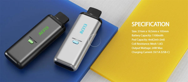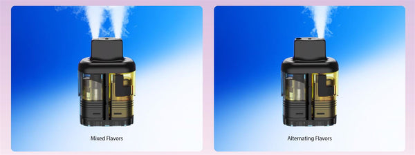 The Eleaf iORE Mix Pod System Kit features a truly innovative dual-pod design: two independent 2 ml pods (totaling 4 ml), each with a 1.0ohm mesh coil. With a simple two-click switch you can vape the left pod, the right pod, both simultaneously, or alternate between them—enabling flavor mixing, backup capacity, or extended use. Powered by a built-in 1100 mAh battery with up to 24 W output, it delivers reliable all-day vaping and recharges quickly via USB-C (5 V/1 A). Every device includes an RGB LED battery indicator and a slide-to-fill side port for easy e-liquid refills. Slim and pocket-friendly, it's the ideal solution for flexibility, flavor, and simplicity.