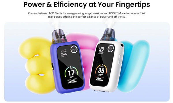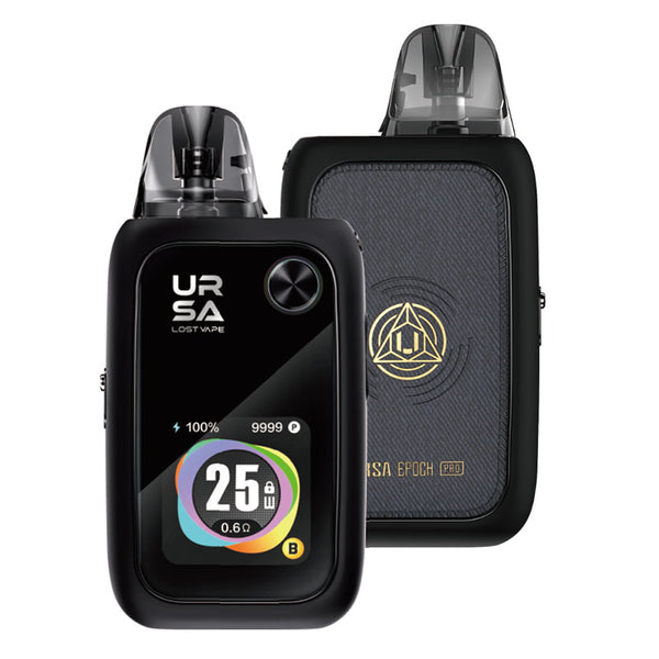 The Lost Vape Ursa Epoch Pro is a premium evolution of the original Ursa Epoch, now designed for vapers who want more power and personalization. Equipped with a robust 1400mAh rechargeable battery and up to 35W output, this pod system endures longer sessions while delivering rich flavor. The kit supports a new 2.5ml pod compatible with URSA Cartridge (V1/V2/V3) and a vibrant 1.3inch TFT screen with customizable 5 UI themes to display real-time data—battery level, wattage, puff count, coil resistance, and more. Unlike its predecessor, Epoch Pro adds full wattage adjustability (1–35W) via a dedicated button and retains the same silicone-wrapped chassis for grip and protection. Whether you're into MTL or RDL vaping styles, Ursa Epoch Pro blends style, versatility, and advanced tech in one sleek package.