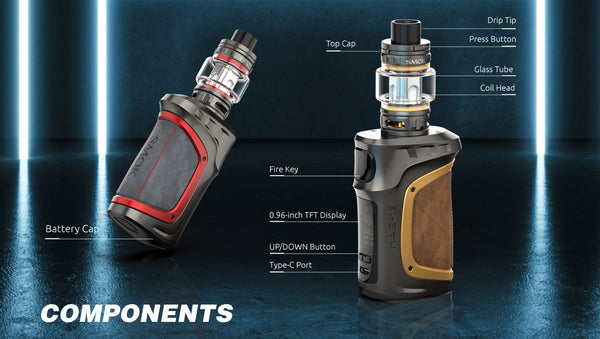 The Mag-18 has a maximum power of 230W from dual 18650 batteries accessible by way of a bottom cap.(bypass mode, variable wattage mode, TC mode,) The cells can be recharged via a 2 amp fast-charging USB-C interface that will conclude the procedure in practically no time at all. paired with the powerful 7.5ml TFV18 Tank and two TFV18 meshed coils, allowing you to enjoy huge clouds and delectable flavors for a sustainable vaping experi-ence. the touchscreen has been replaced by an exquisite 0.96inch TFT display with full-color UI. Smok TFV18 Tank that is capable of holding up to 7.5ml of your favorite e-liquid with the TFV18 mesh coils(0.15ohm and 0.33ohm),Both of these heads operate in the range of 80 to 140 watts.