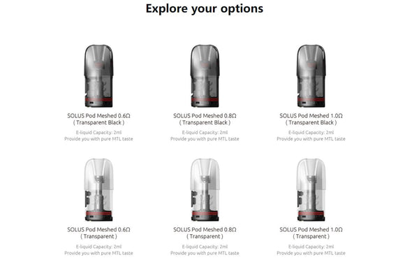 O cartucho Solus Pod foi projetado especialmente para os dispositivos Smok Solus / Solus 2 / Solus G-Box / Solus G / Solus GT / Solus GT Box, com capacidade para 3ml de e-líquido.