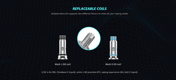 Rincoe Jellybox Nano oferece duas opções de vaporização: se você prefere a vaporização boca-a-pulmão (MTL), a bobina mesh de 1,0 ohm é a mais adequada; já se você prefere a vaporização DL (inalação direta no pulmão), a bobina mesh de 0,5 ohm proporciona um sabor excepcional. Ela é compatível com o cartucho Rincoe Jellybox Nano e com o kit Rincoe Jellybox Nano Pod Mod.