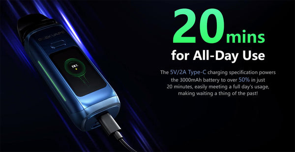 The Digi Max Pod Vape Kit comes equipped with a robust 3000mAh built-in battery, providing long-lasting power to keep you vaping throughout the day. With a maximum output of 80W, 1.47inch Interactive Touch Screen & RGB Flowing light strip,and shows all the vital information, With top airflow control, the Digi Max ensures a smooth and leak-free vaping experience.this pod kit is fully compatible with the J and JR Pod Cartridges, ready for holding at most 5ml e-liquid. the device offers both auto-draw and button activation, giving you the flexibility to choose your preferred method of use.
