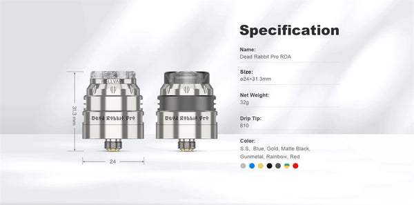 The Hellavpe Dead Rabbit Pro RDA is dual coil RDA, features 3 airflow modes to provide you with various air intakes and mellow taste. With the postless building deck, .This dripper is compatible with dual coil builds but may also work with single configurations as far as we can tell. The extra 810 drip tip and side AFC ring are included in the package. It also supports DIY combo colorful match to make you enjoy DIY fun.At the bottom,a gold-plated 510 connection maximizes conductivity. It can be swapped with an included BF pin for use with your favorite squonker.