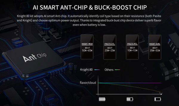 O Smoant Knight 80 Kit é um dispositivo pod mod RBA multifuncional, compacto e delicado. O Smoant Knight 80 Kit utiliza uma única bateria 18650 substituível para fornecer suporte ao vape e pode transmitir uma potência de saída de até 80W. Além disso, o Smoant Knight 80 Pod Kit está equipado com um chip inteligente ANT com IA e um chip buck-boost que suporta a função de memória do atomizador, ajustando automaticamente a saída de acordo com a resistência e fornecendo uma potência constante para um sabor de primeira classe. Vale ressaltar que o Knight Pod Kit é compatível com todas as resistências Smoant Pasito. Também é compatível com o novo design RBA que suporta configurações de resistência simples e dupla. Compatível com um total de seis tipos de resistências. Exibindo dados relevantes de vape na tela OLED de 0,96 polegadas, o Smoant Knight 80 Kit transmite informações importantes ao usuário. Quanto aos pods Knight, eles podem armazenar até 4ml de e-líquido, possuem um sistema à prova de vazamentos, sistema de controle de fluxo de ar independente e um novo sistema de trava de segurança para crianças. Compacto, desempenho potente, sabor puro, excelente experiência de vaporização.