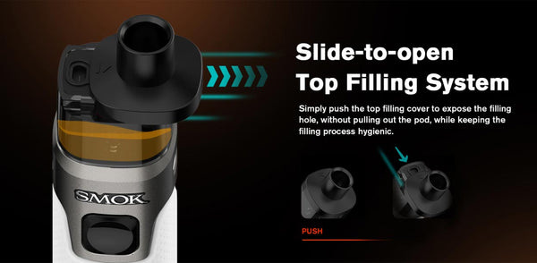 O Smok RPM 5 Pod Mod Kit possui uma bateria integrada de 2000mAh. As versões com bateria interna e externa são opcionais, fornecendo até 80 watts de potência suficiente para uma experiência de vaporização imersiva. A nova tecnologia mesh foi adotada para aprimorar o sabor de forma mais eficiente e, devido à superfície mesh ampliada, gera mais vapor, o que não só aumenta a área de atomização, como também melhora a taxa de aquecimento. O diferencial está no sistema de enchimento superior deslizante e no design do pod com trava de segurança infantil, que previne vazamentos. O controle de fluxo de ar contínuo é ajustável, permitindo que você escolha a opção que melhor se adapta à sua preferência. O pod RPM 5 de 6,5ml vem com duas bobinas mesh RPM 3 para satisfazer os entusiastas da vaporização DL (direto para o vapor). O acabamento brilhante e as bordas arredondadas oferecem um visual elegante e uma sensação fluida, enquanto o pod impressionante combina design clássico com engenhosidade para oferecer um companheiro de vaporização completo.