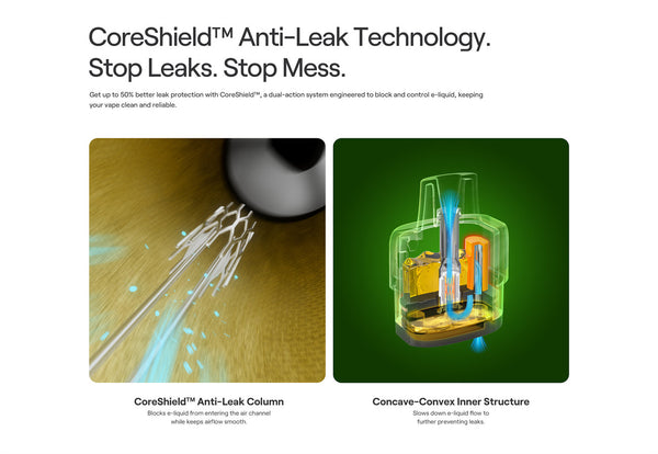 3. Sistema anti-vazamento de dupla ação CoreShield™ para vaporização sem sujeira.