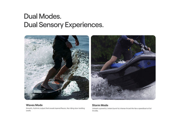 6. Dois modos de saída (Tempestade/Ondas) para golpes fortes na garganta ou sabor suave.