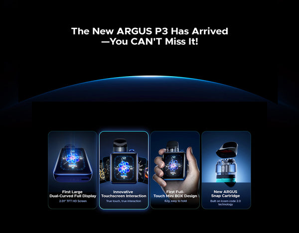 Alimentado por uma bateria de alta densidade de 1500mAh, o ARGUS P3 suporta uma potência ajustável de até 30W, permitindo vaporização MTL e RDL. Com o mais recente cartucho ARGUS Snap com tecnologia de otimização de sabor iCOSM CODE 2.0, garante 30 dias de desempenho à prova de vazamentos e uma vida útil da resistência de até 100ml. O sistema de recarga superior garante praticidade e higiene, enquanto o ajuste contínuo do fluxo de ar e a tela sensível ao toque altamente responsiva permitem que você personalize cada vaporização. Com temas de interface personalizáveis, opções de idioma e modos interativos como Festa e SOS, o ARGUS P3 redefine o conceito de um sistema de pods inteligente.
